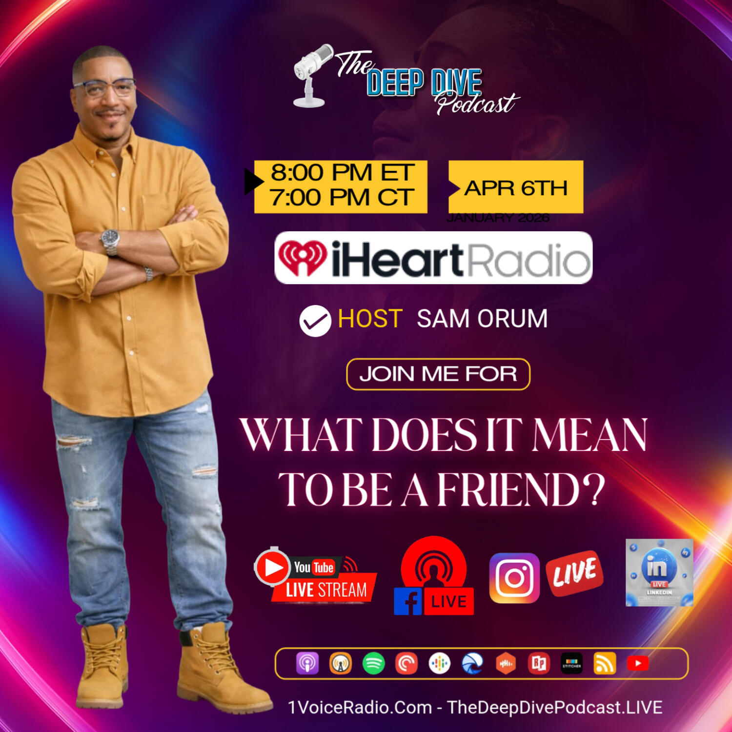 "The Deep Dive Podcast" with Sam Orum is an empowerment and entertainment platform designed to give the presenter a space to educate, uplift, and empower the audience of listeners. This also gives the listeners tools to continue to grow their lives or to just be entertained.